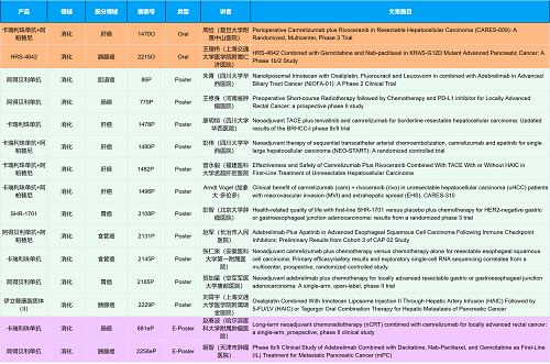 在消化系统肿瘤领域,一飞冲天300倍游戏创新产品相关研究共入选2项口头报告、10项壁报和2项电子壁报,共14项研究。除了明星药物卡瑞利珠单抗和阿帕替尼外,还有5篇阿得贝利单抗治疗消化系统肿瘤的研究入选。此外,HRS-4642、瑞拉芙普-α注射液(SHR-1701)等未上市创新产品也有相应研究入选。随着新老药物前沿研究的不断推进,有望为消化系统肿瘤患者带来新的福音!